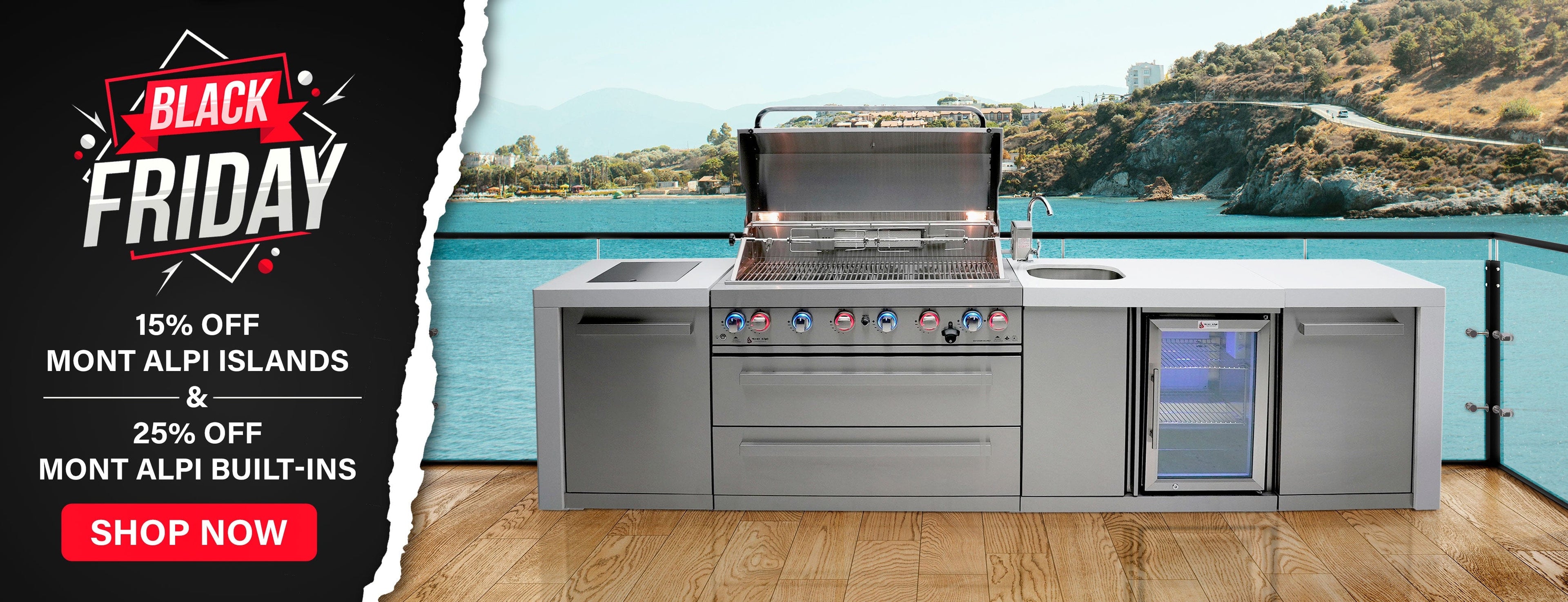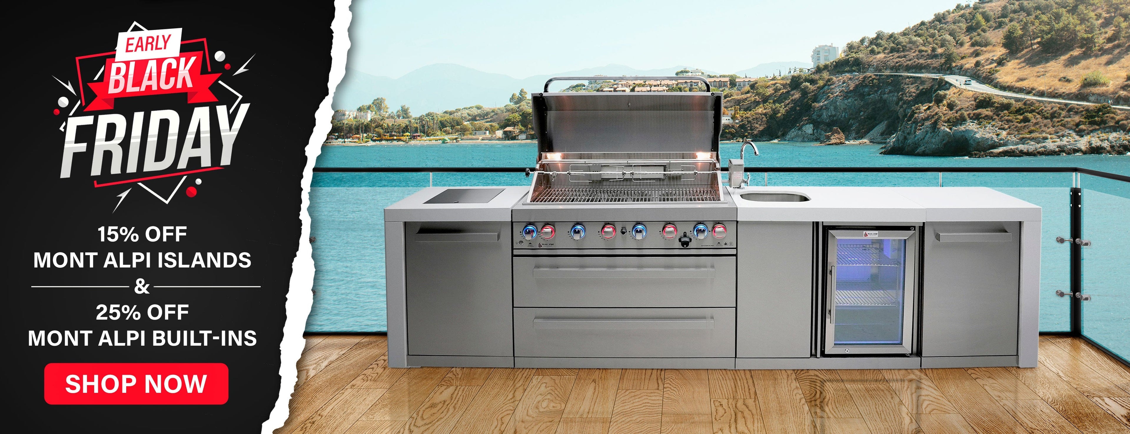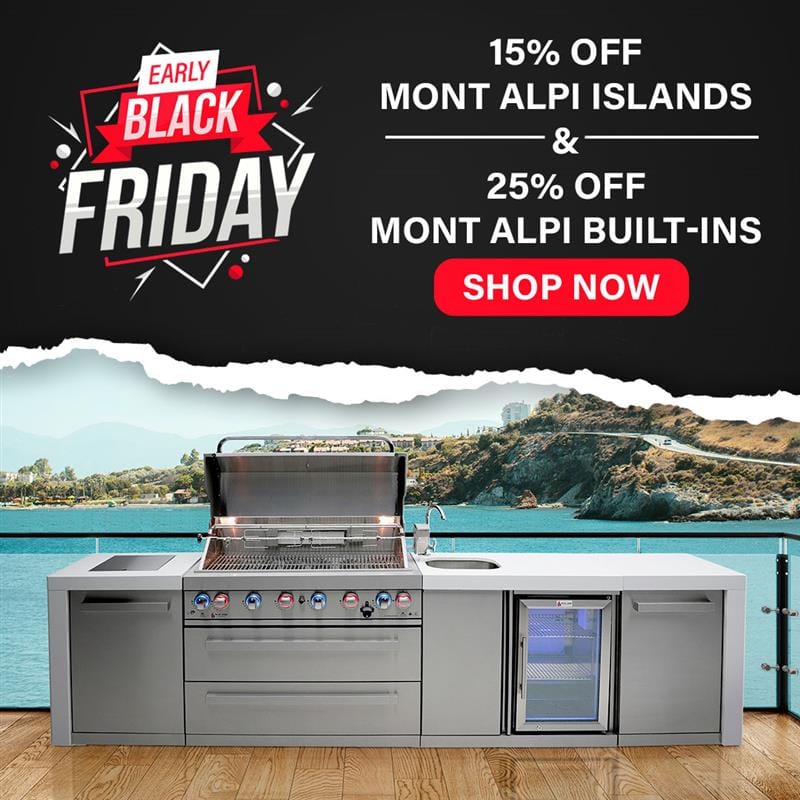 Discover the ultimate outdoor cooking station with this 805 Deluxe Island Grill. All the essential functions condensed into this grill will certainly have the all neighbors green with envy in no time. With top of the line stainless steel and infrared burners, you'll be able to craft culinary delights the whole family will love. Customers give these islands rave reviews. Check out our Mont Alpi Island Reviews here.