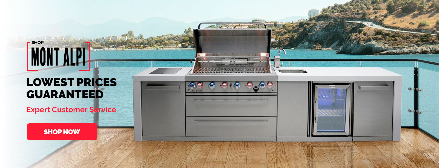 Discover the ultimate outdoor cooking station with this 805 Deluxe Island Grill. All the essential functions condensed into this grill will certainly have the all neighbors green with envy in no time. With top of the line stainless steel and infrared burners, you'll be able to craft culinary delights the whole family will love. Customers give these islands rave reviews. Check out our Mont Alpi Island Reviews here.