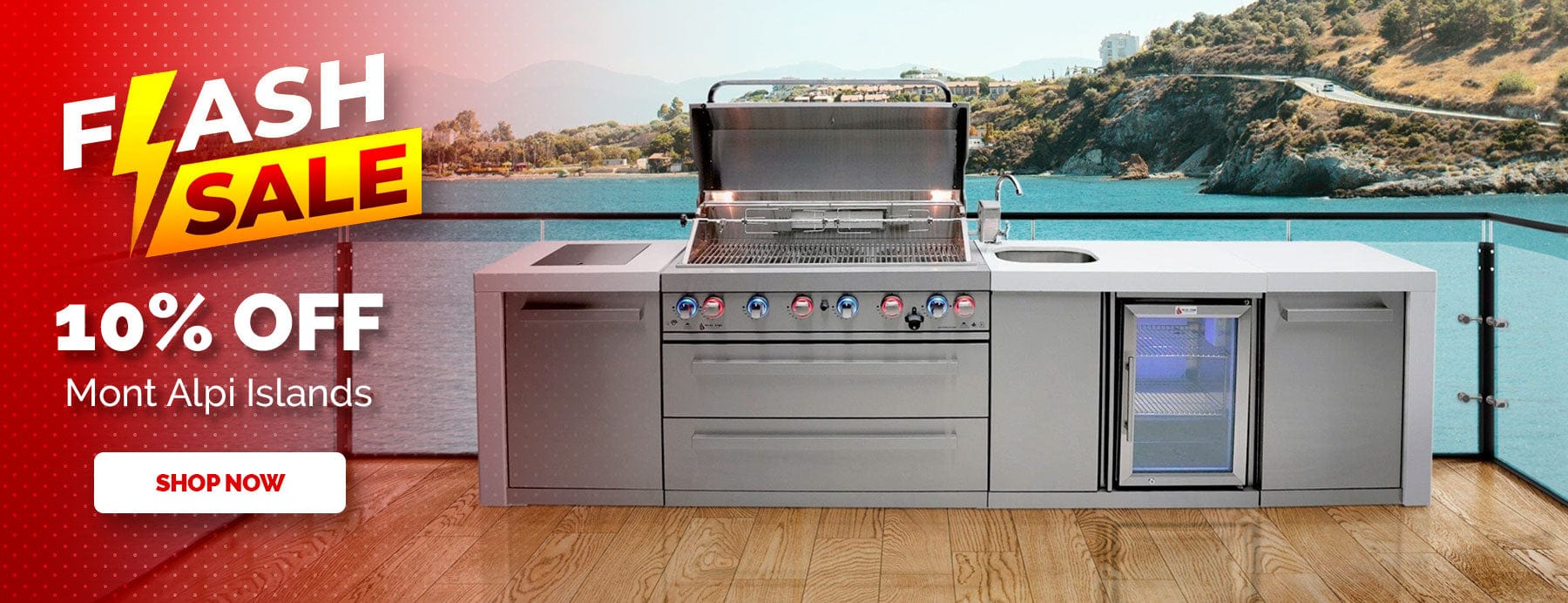 Discover the ultimate outdoor cooking station with this 805 Deluxe Island Grill. All the essential functions condensed into this grill will certainly have the all neighbors green with envy in no time. With top of the line stainless steel and infrared burners, you'll be able to craft culinary delights the whole family will love. Customers give these islands rave reviews. Check out our Mont Alpi Island Reviews here.