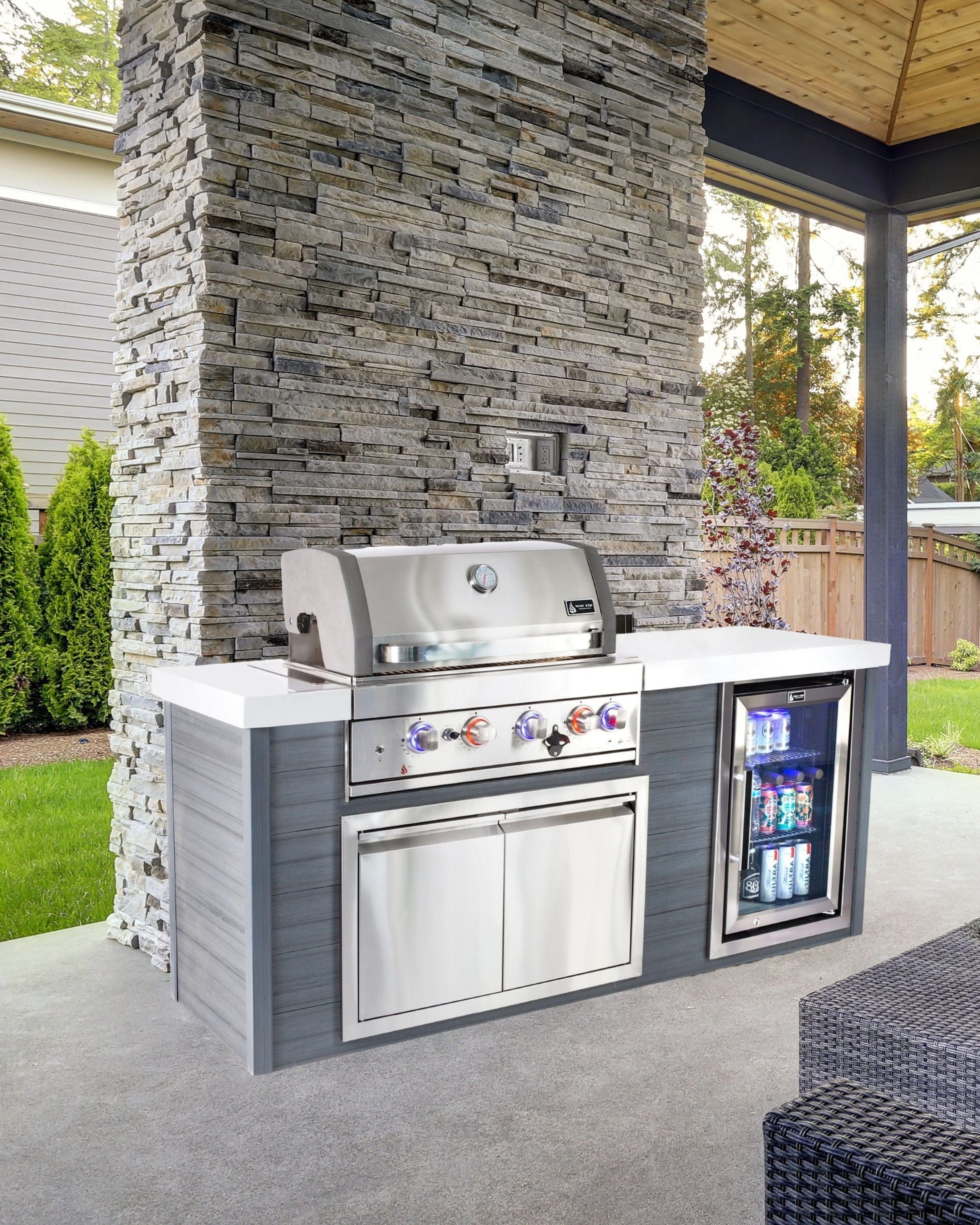 Vendor:Mont AlpiMont Alpi 400 Artwood Island with Stainless Steel Grill and Fridge / 4-Burners, Infrared Rear Burner, Rotisserie Kit, Cover / MA400-AW
