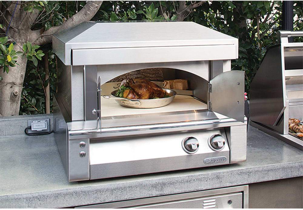 The Alfresco 30" Countertop Pizza Oven integrates perfectly into any Alfresco outdoor kitchen. The Alfresco pizza oven is sure to become your favorite creative culinary tool. It preheats in 15 min. and can reach over 1000° F, allowing you to roast, bake, iron-skillet sear, and of course, cook perfect three minute Neopolitan pizzas.