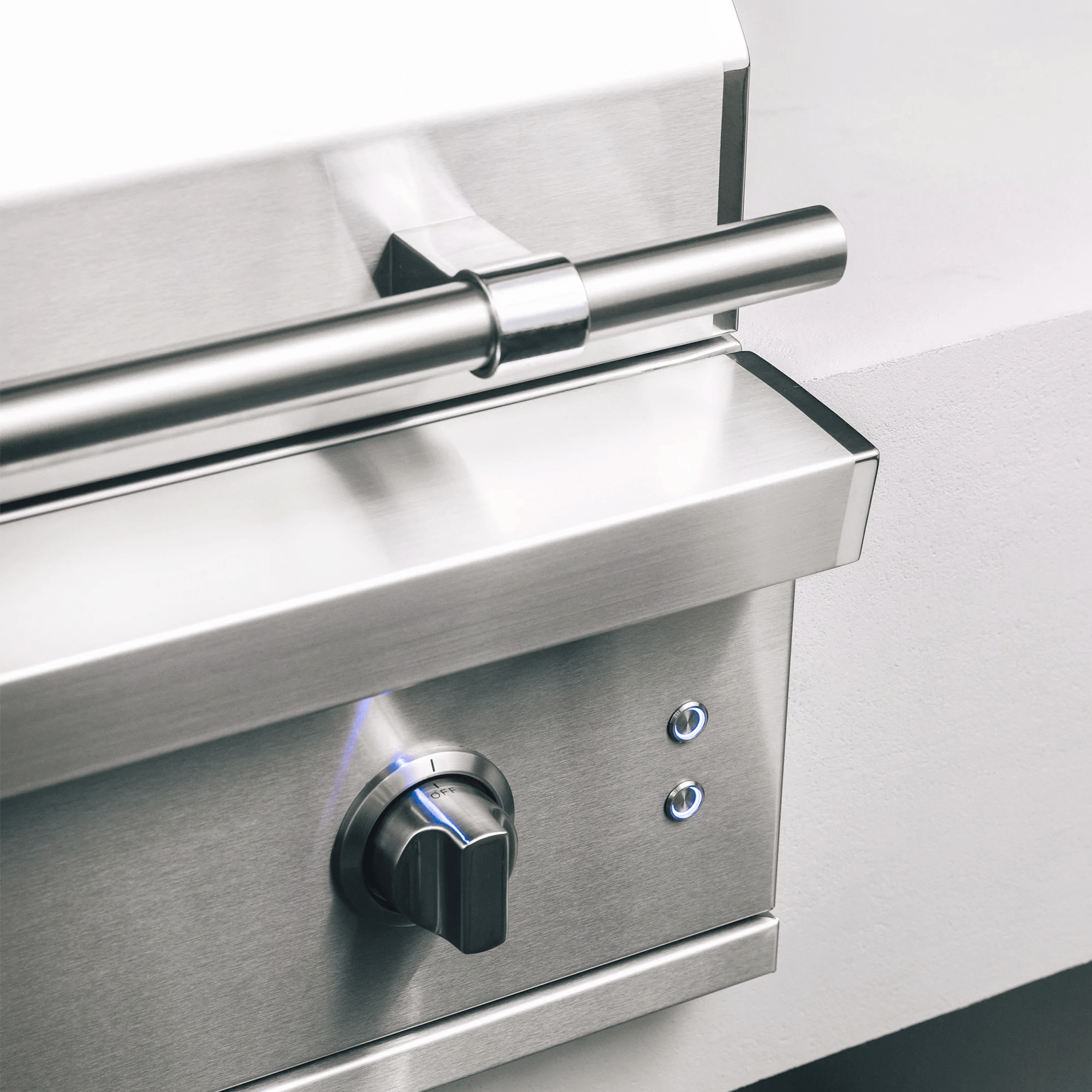 The Atlas Grill is a high-performance, luxury grill line made entirely in the USA. Elevate your outdoor lifestyle with the seamless design and superior performance of the Atlas Grill. #304 stainless steel construction, interior, and exterior lighting, and a dual-position warming rack system are just a few of the features that ensure you get the most out of your outdoor kitchen in both style and functionality. The flame-taming burner covers vaporize flare-ups and add grilling essence, while the all-new square cooking grates increase the contact surface with food, adding beautiful grill marks and unparalleled flavor.