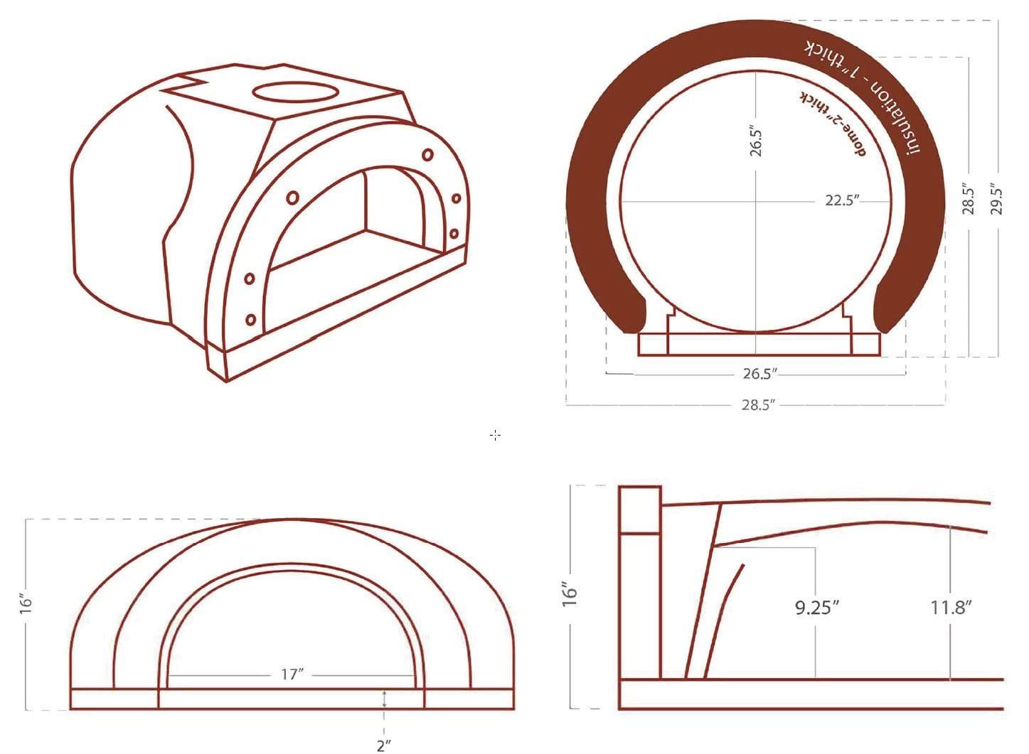 - 5-Piece Oven - Dome, 2-piece Hearth (27" x 22" cooking surface), Arch, Decorative Door