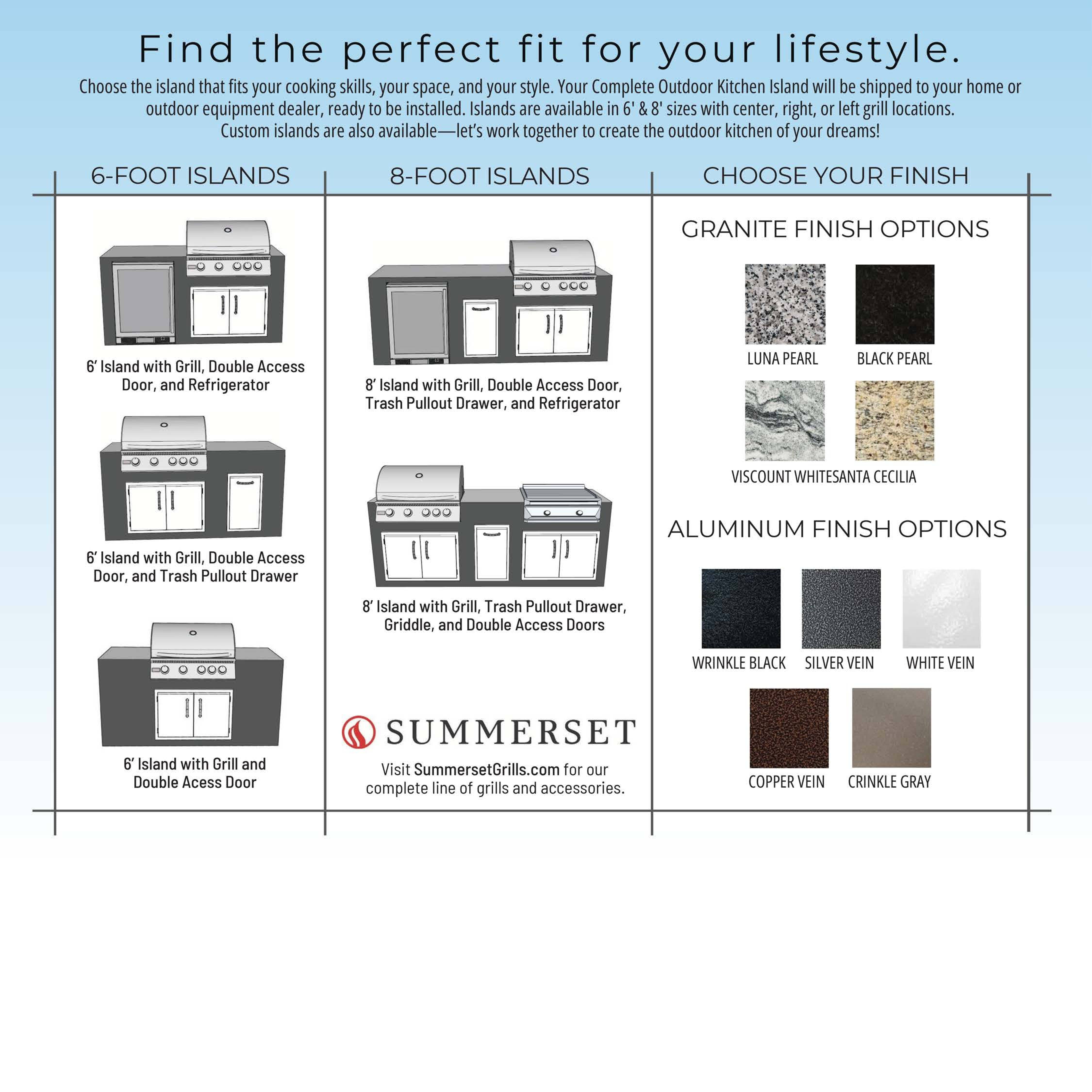 Upgrade your living space with a Complete Outdoor Kitchen Island— the fast, easy, and stylish way to create the outdoor cooking center of your dreams without hiring a contractor. Our outdoor kitchen islands come complete with the top-quality Summerset grills and components you need for outdoor cooking and entertaining