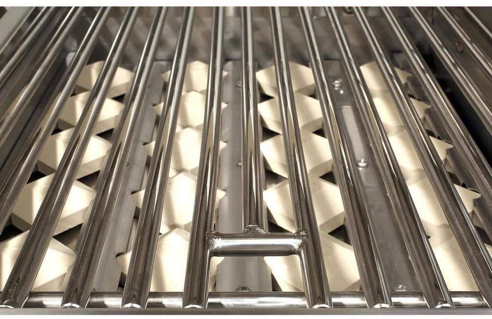 Refractive Briquettes eliminate hot and cold spots making the effective grilling area 100% of the grilling surface. A special pyramid shape evenly delivers intense heat to the cooking surface. Stainless Steel cooking grates over the briquette and “U” burner sections have a special nonstick electro-polished finish.