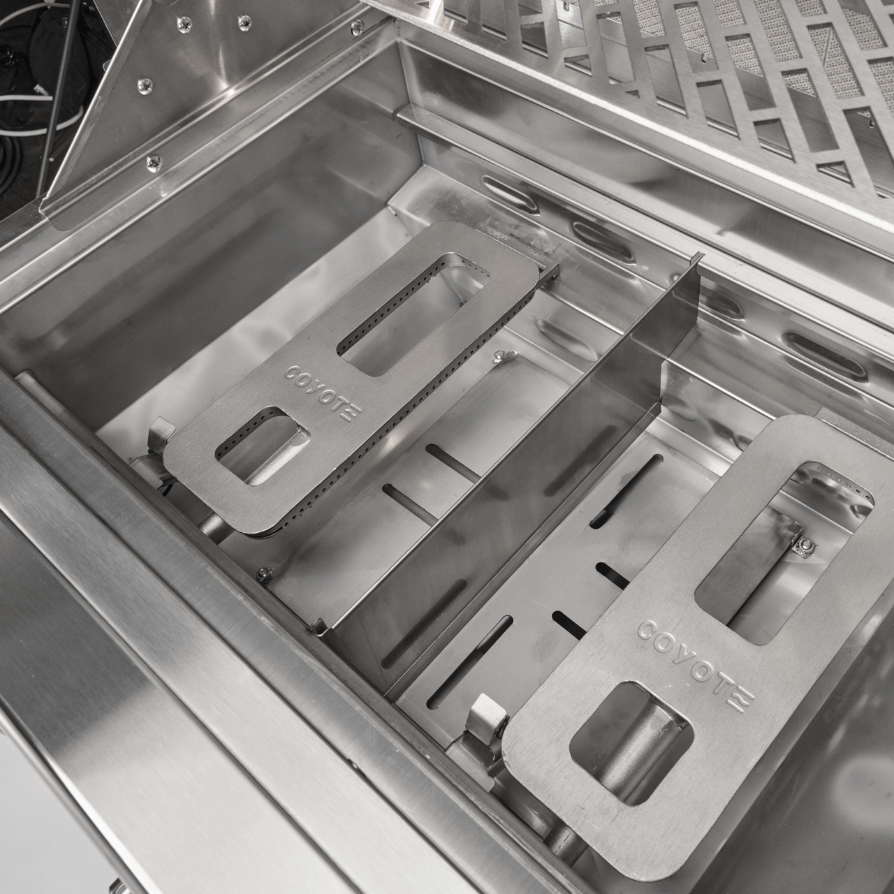 Bring luxury to your backyard with premium features included with every SL-Series grill, including multi-color backlit knobs, a stylish throw light, and a set of Coyote’s signature high performance Infinity Burners™ and interchangeable Sear burner. Manage multiple components at once with effective heat zone separators, designed to help you create distinct temperature zones for precise heat control, so you can sear, slow-cook, or warm different foods at the same time without temperature overlap. The easy lift hood uses a spring-assisted mechanism for smooth, one-handed operation. Rest easy with the integrated safety valve, which allows gas flow only when a flame is present and automatically shuts off if the flame goes out, preventing gas leaks and ensuring a secure grilling experience every time.