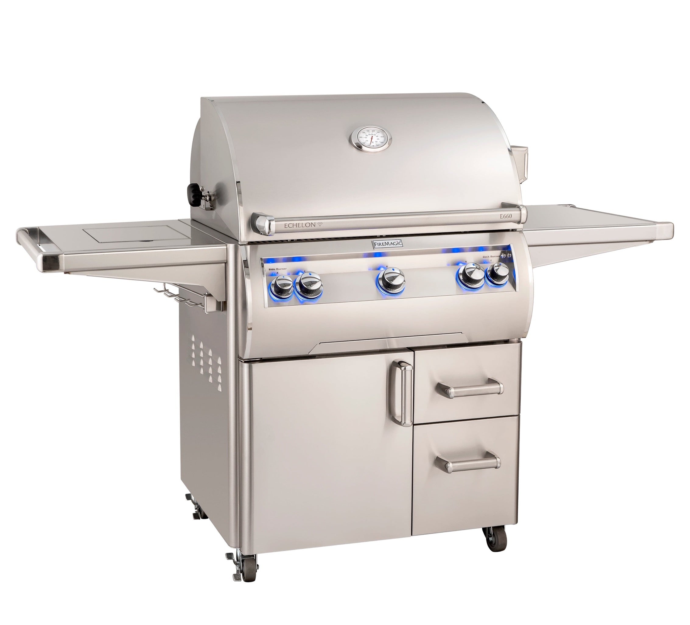 Fire Magic Echelon Diamond 30" Portable Grill with Rotisserie, Analog Thermometer and Flush Mounted Single Side Burner / E660s-9EAN(P)-62, E660s-9LAN(P)-62, E660s-9EAN(P)-62-W, E660s-9LAN(P)-62-W