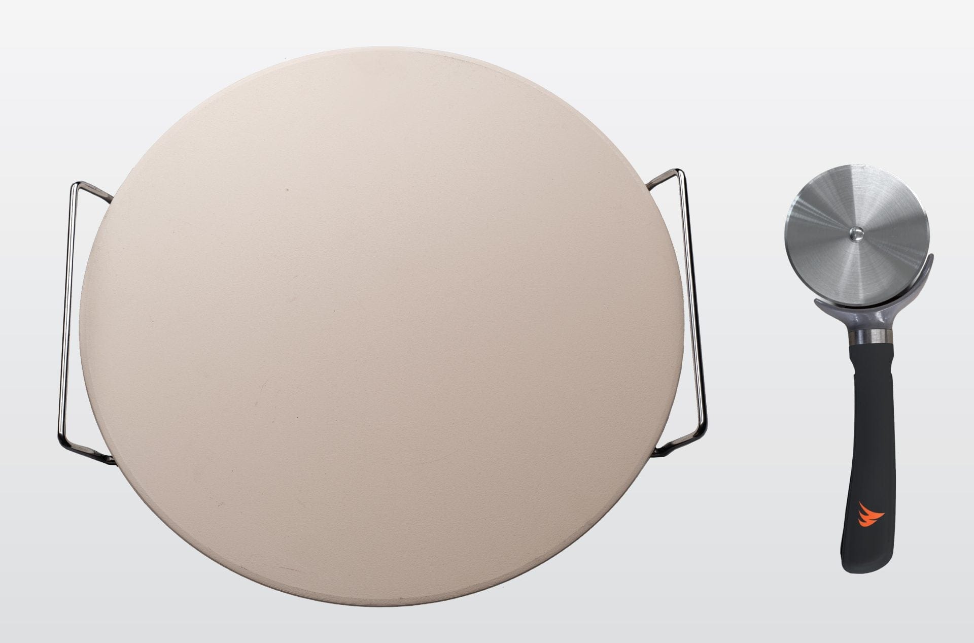 Hungry for restaurant-style, wood-fired pizza at home? Make it on your Memphis! This durable and convenient 3-piece pizza set includes a pizza stone, rack and cutter. Made of cordierite, this pizza stone withstands temperatures up to 800° and creates a perfect pizza crust on the grill or in the oven! The set also includes a stainless-steel pizza rack and cutter. Pizza stone is 12.99 inches in diameter.