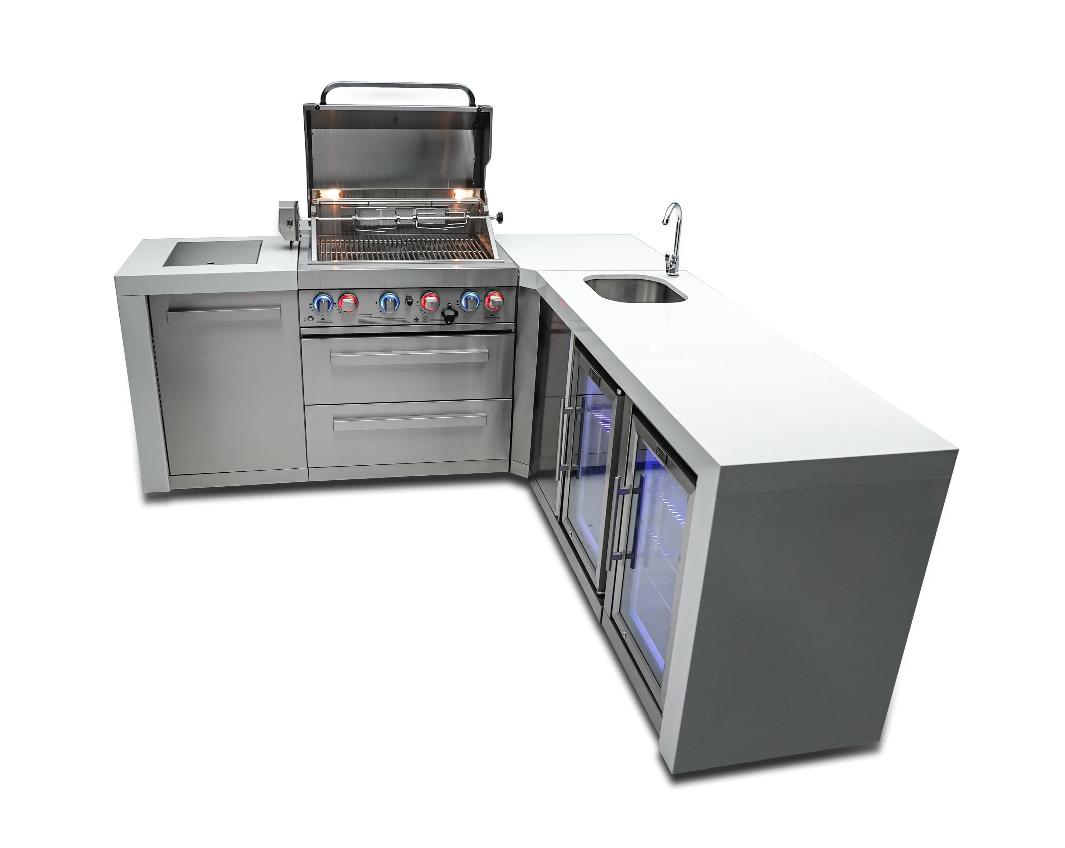 Mont Alpi 400 Deluxe Island with Beverage Center, Fridge Cabinet, and 90 Degree Corner / MAi400-DBEV90FC