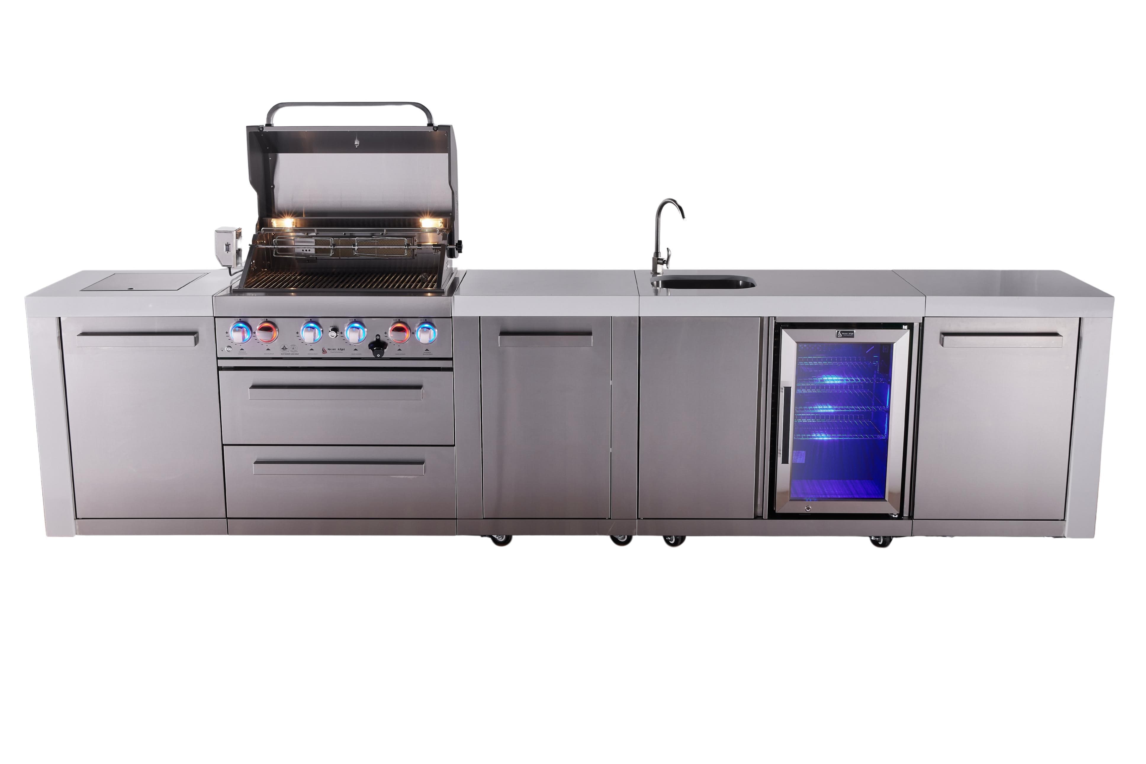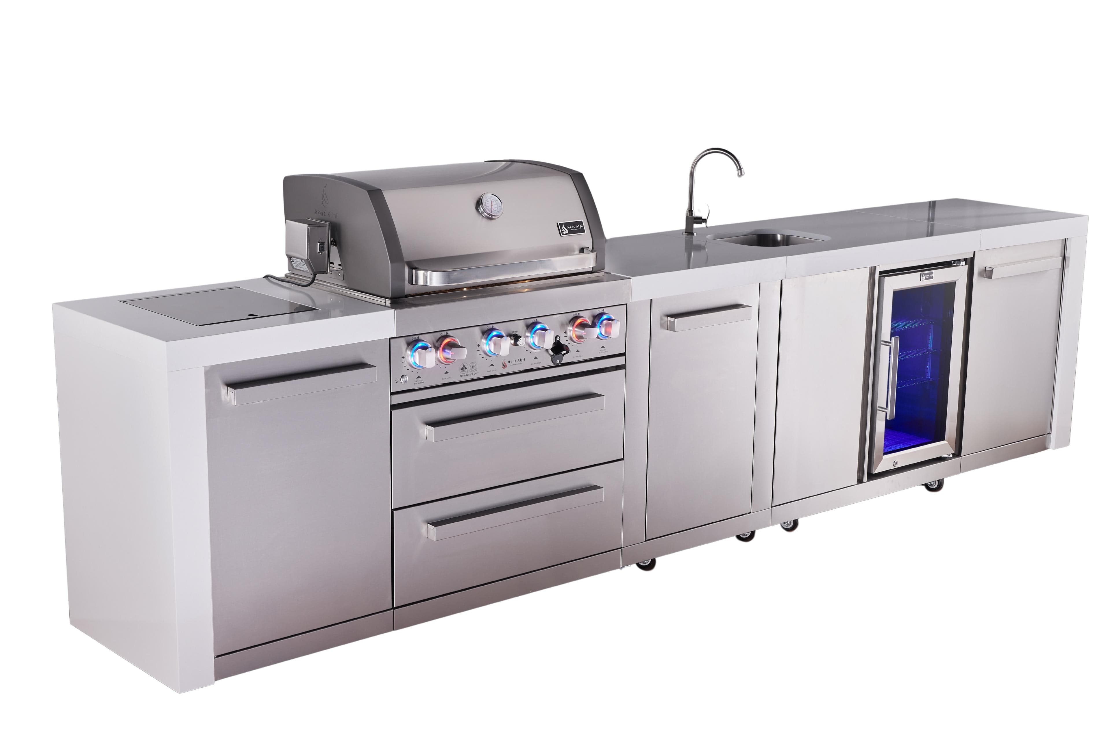 Mont Alpi 400 Deluxe Island with Beverage Center and Extra Storage Cabinet | 4-Burner Grill, Sink, Fridge, Stainless Steel | MAi400-DBEVXL