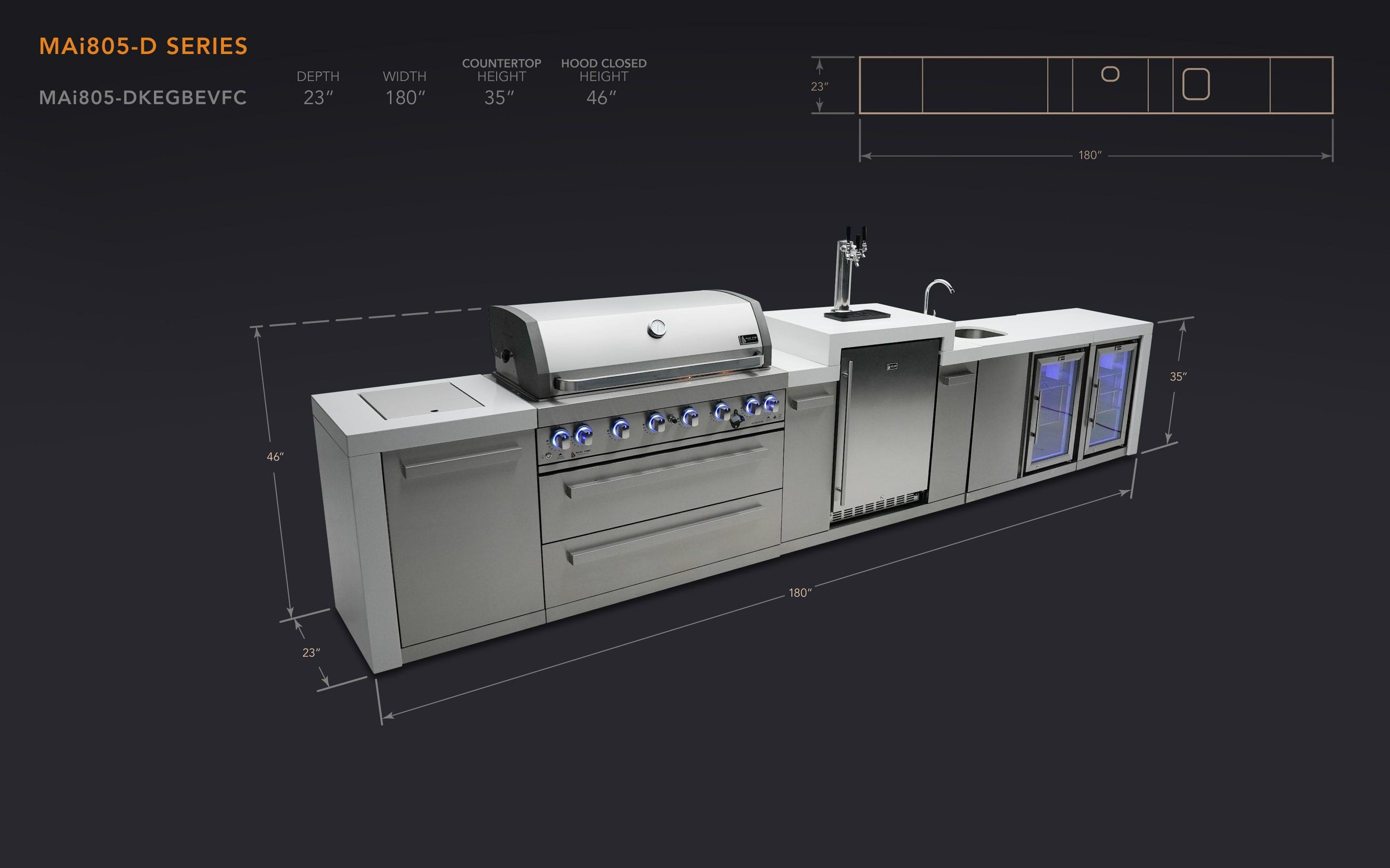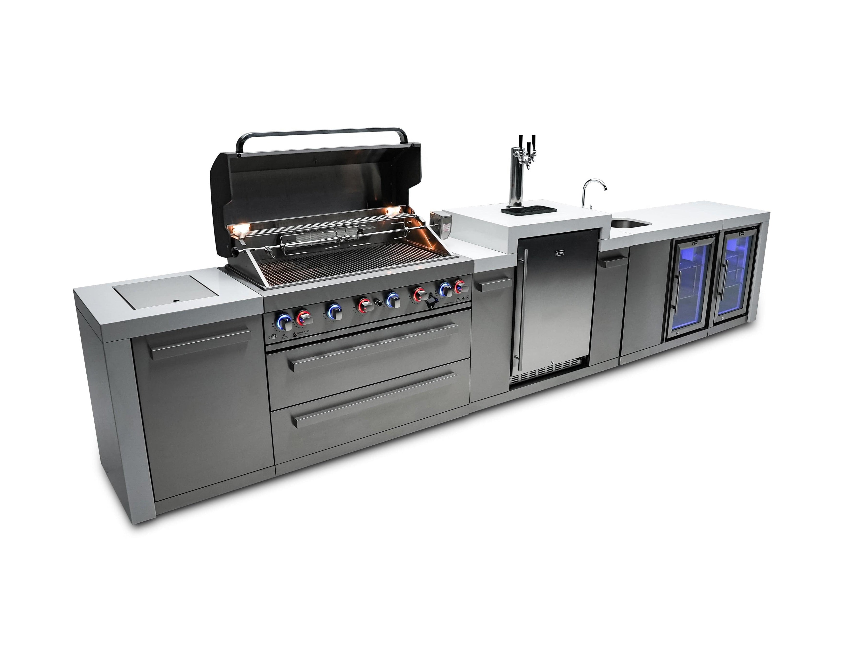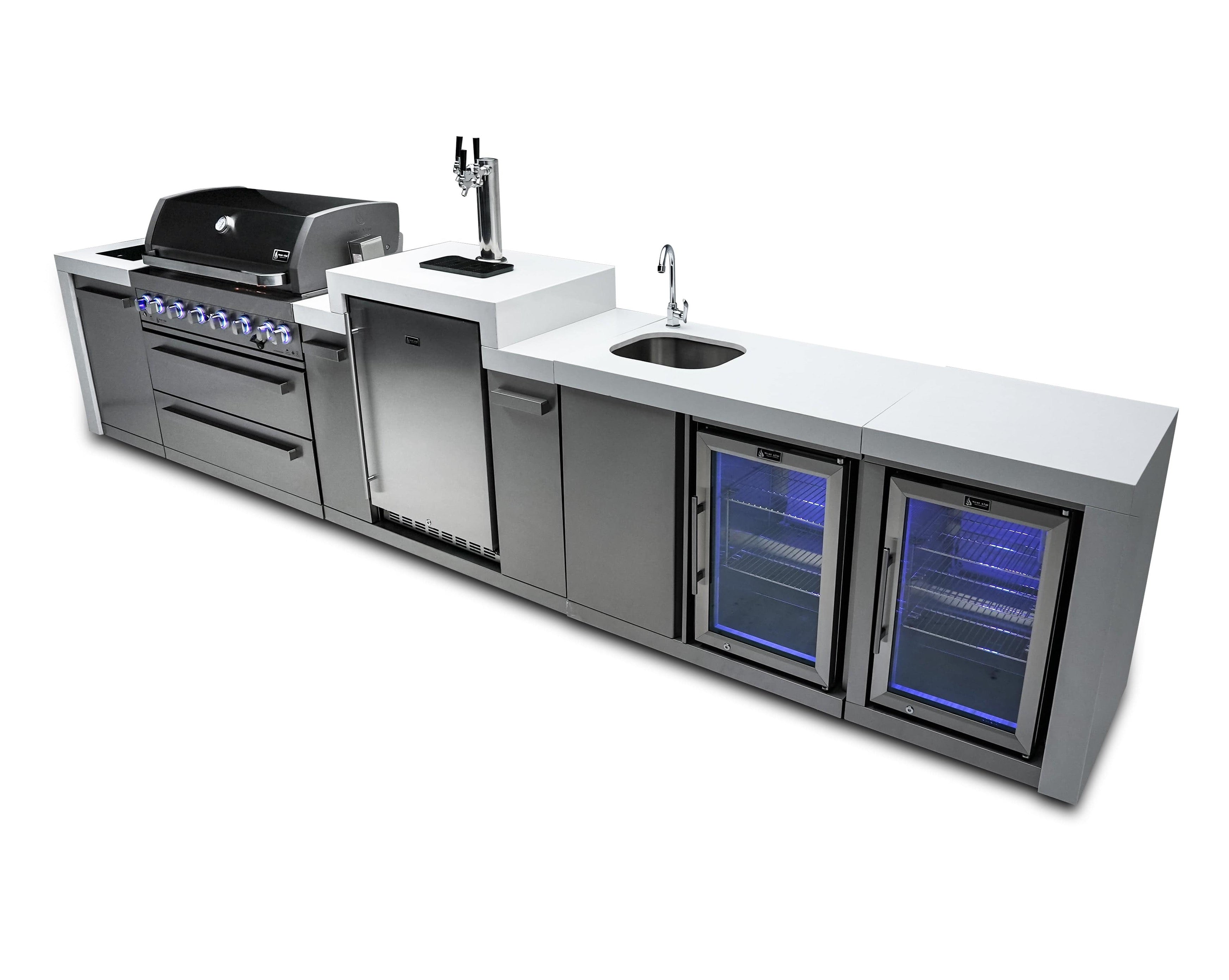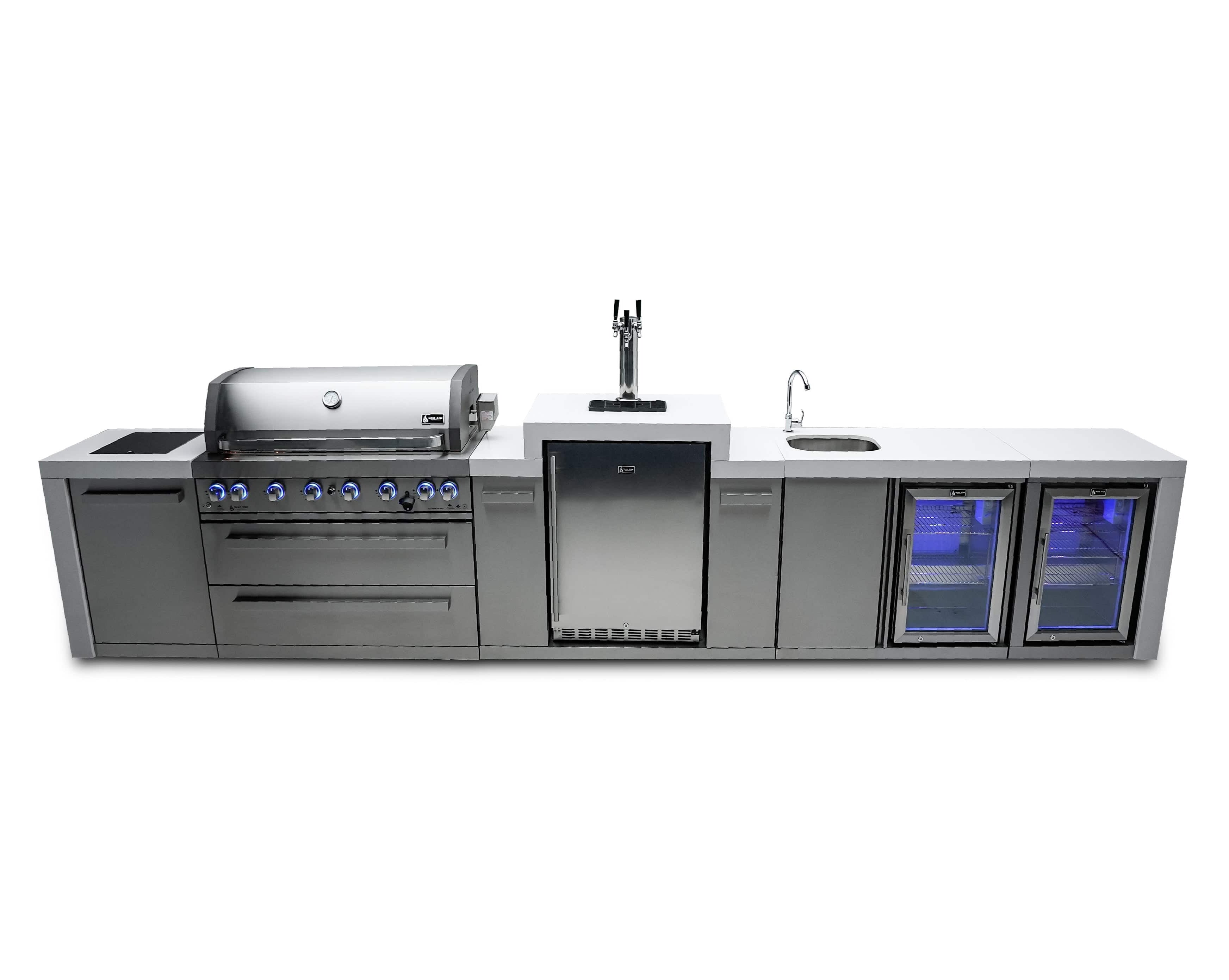 Mont Alpi 805 Deluxe Island with Beverage Center, Kegerator, and Fridge Cabinet / MAi805-DKEGBEVFC