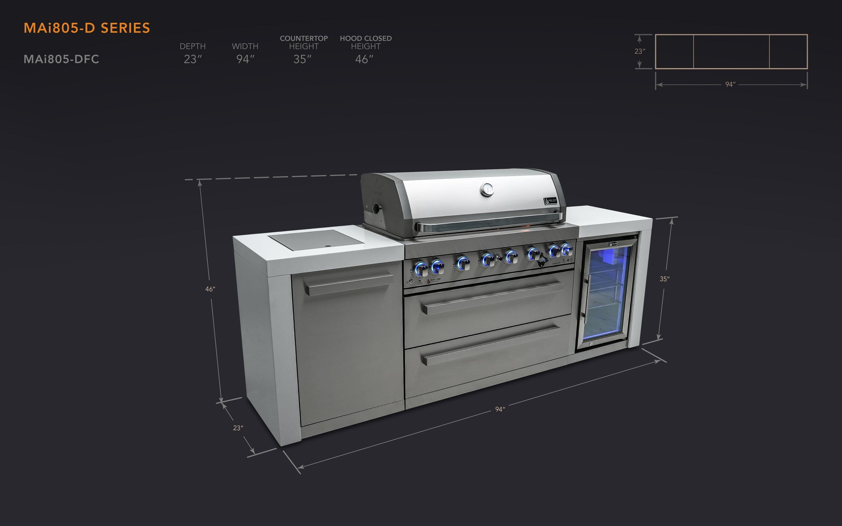 Mont Alpi 805 Deluxe Island with Fridge Cabinet / MAi805-DFC