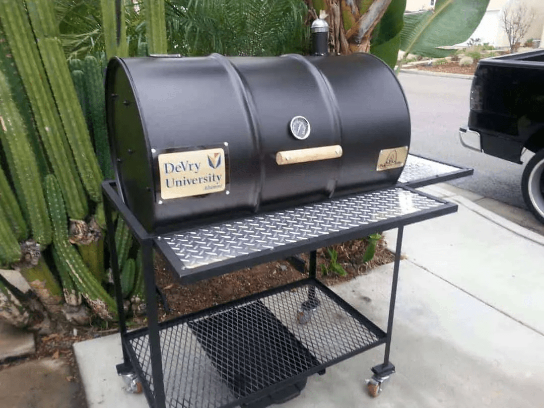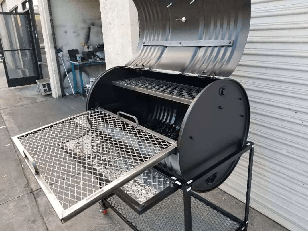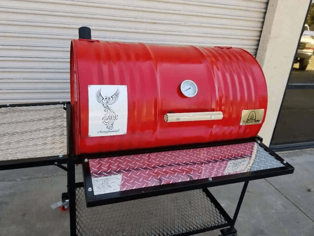 The Deluxe Single Barrel Barbecue Grill is a 55 gallon barrel grill with diamond plate countertops for an easier cleaning surface. This unit is also painted with a high temperature barbecue primer and paint, the paint can come in two colors of your choice Red or Black.