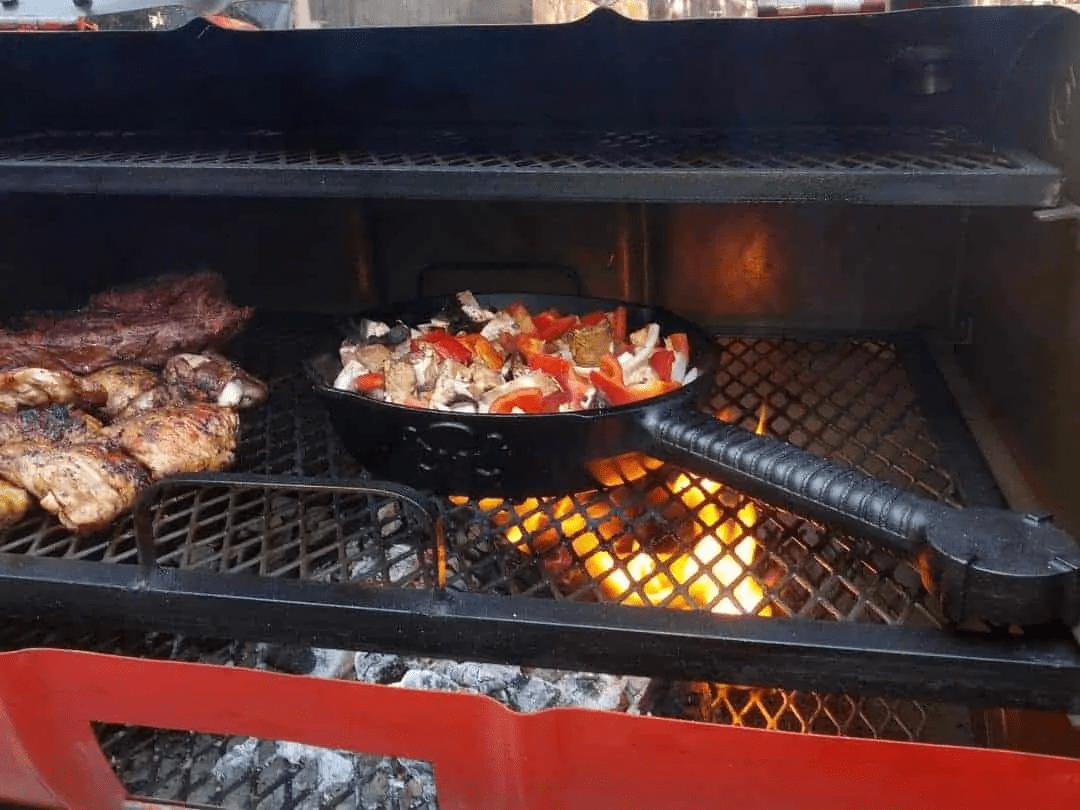 - Top warmer grate, easily removable to give you more cooking space for a large turkey, small pig, smoke pork shoulder