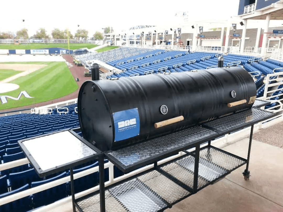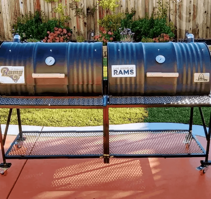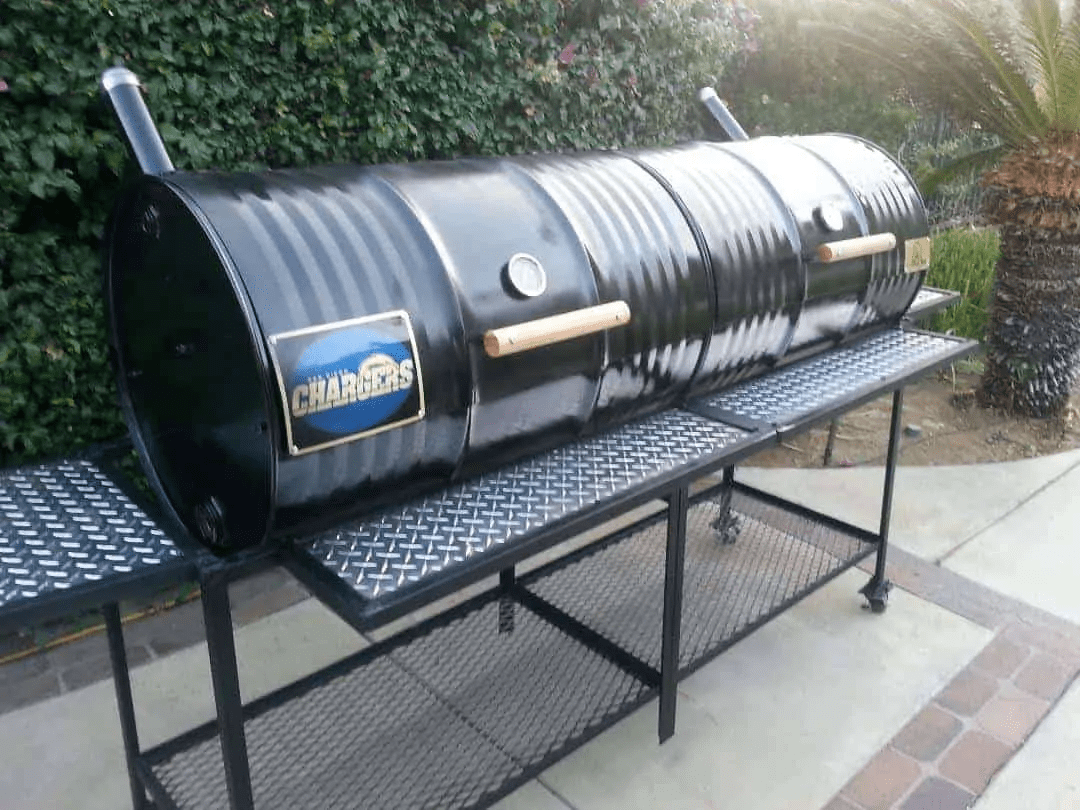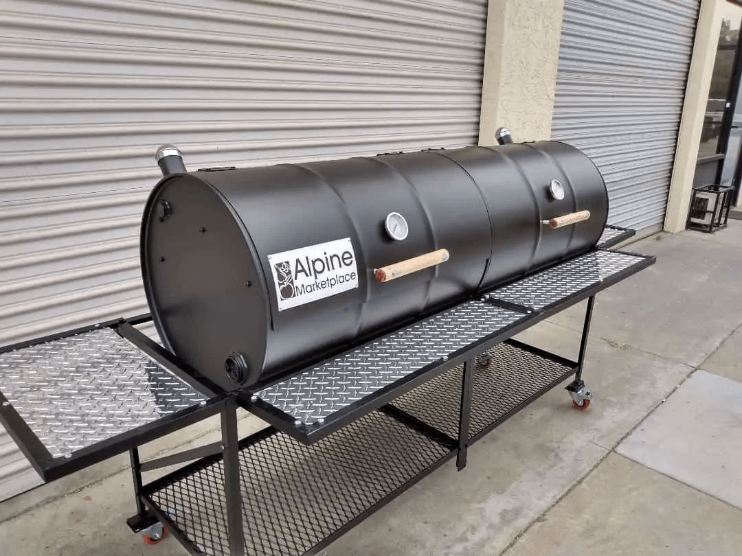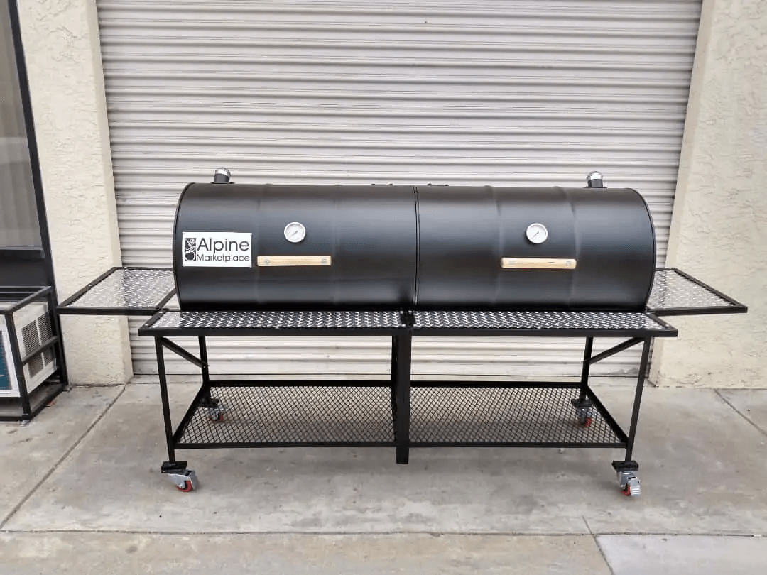 The Tailgate Double Barrel Custom BBQ Grill comes with (2) 55 gallon barrel grills painted with a high temp paint and (2) smoke ventilation stacks and caps.