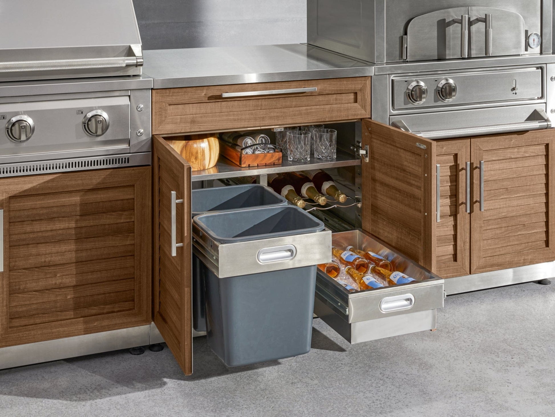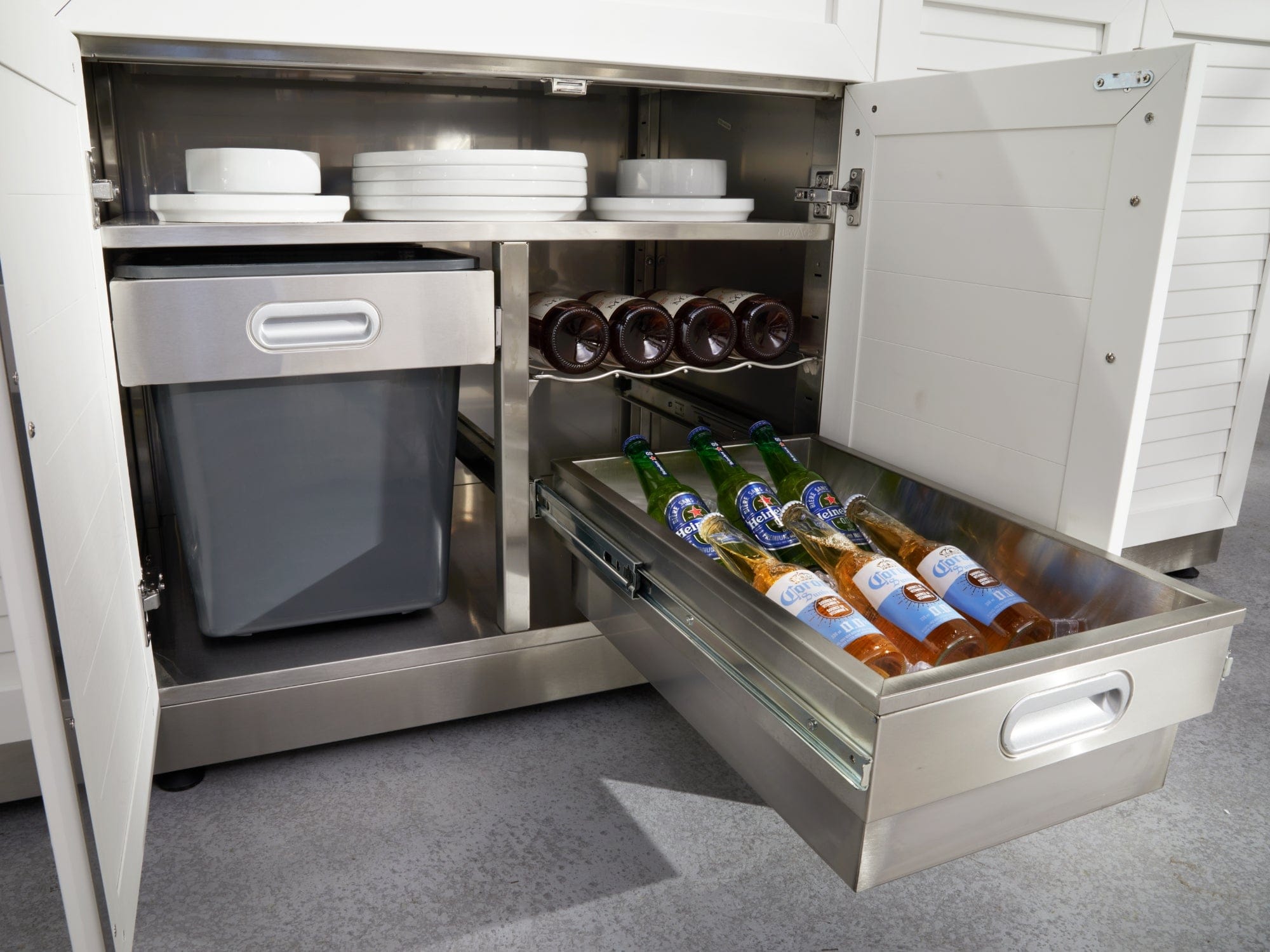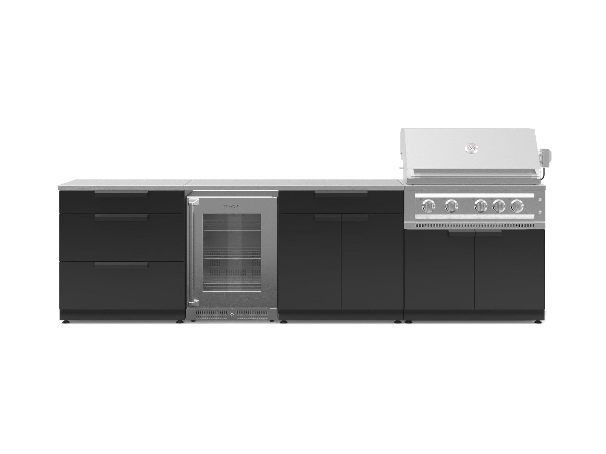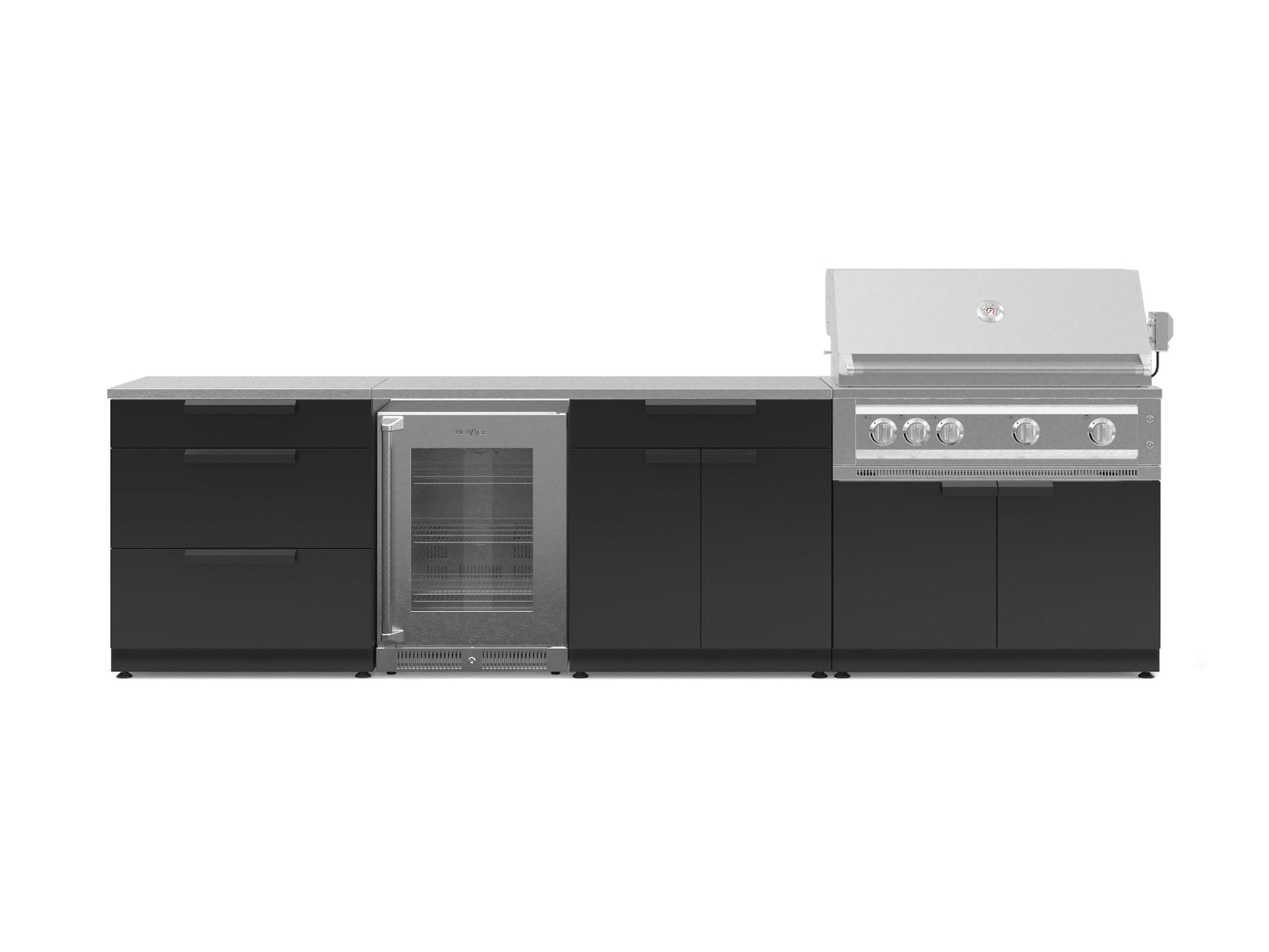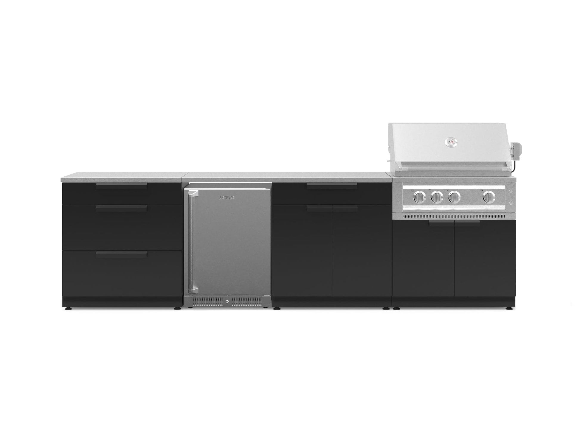 Get grilling and maximize your backyard storage space with a NewAge Products Modular Outdoor Kitchen. Constructed from restaurant-grade, 304 Stainless-Steel, with reinforced double-wall doors, these cabinets are weather and corrosion-resistant for all-season durability. The 3-Drawer Cabinet has adjustable upper drawer dividers for cutlery and tool organization, with two extra deep drawers, perfect for storing all your hosting essentials. The under-counter fridge, crafted from durable stainless steel, showcases a sleek design with a stainless-steel door, touch-control LED display, automatic LED lighting, adjustable shelves, and legs. With 5.1 cubic feet of storage space, this fridge offers ample room for drinks and ingredients. A robust stainless-steel door not only enhances durability but also adds a modern aesthetic to any outdoor kitchen setup, while the optional Low-E glass door adds a touch of sophisticated functionality. The set is finished off with our premium countertops, available in stainless steel, ensuring easy maintenance and year-round durability. Designed with your convenience in mind, our outdoor kitchen cabinets come with pre-assembled frames for easy installation. The NewAge Products Outdoor Kitchen cabinets provide a clean, professional look that will get your backyard organized.
