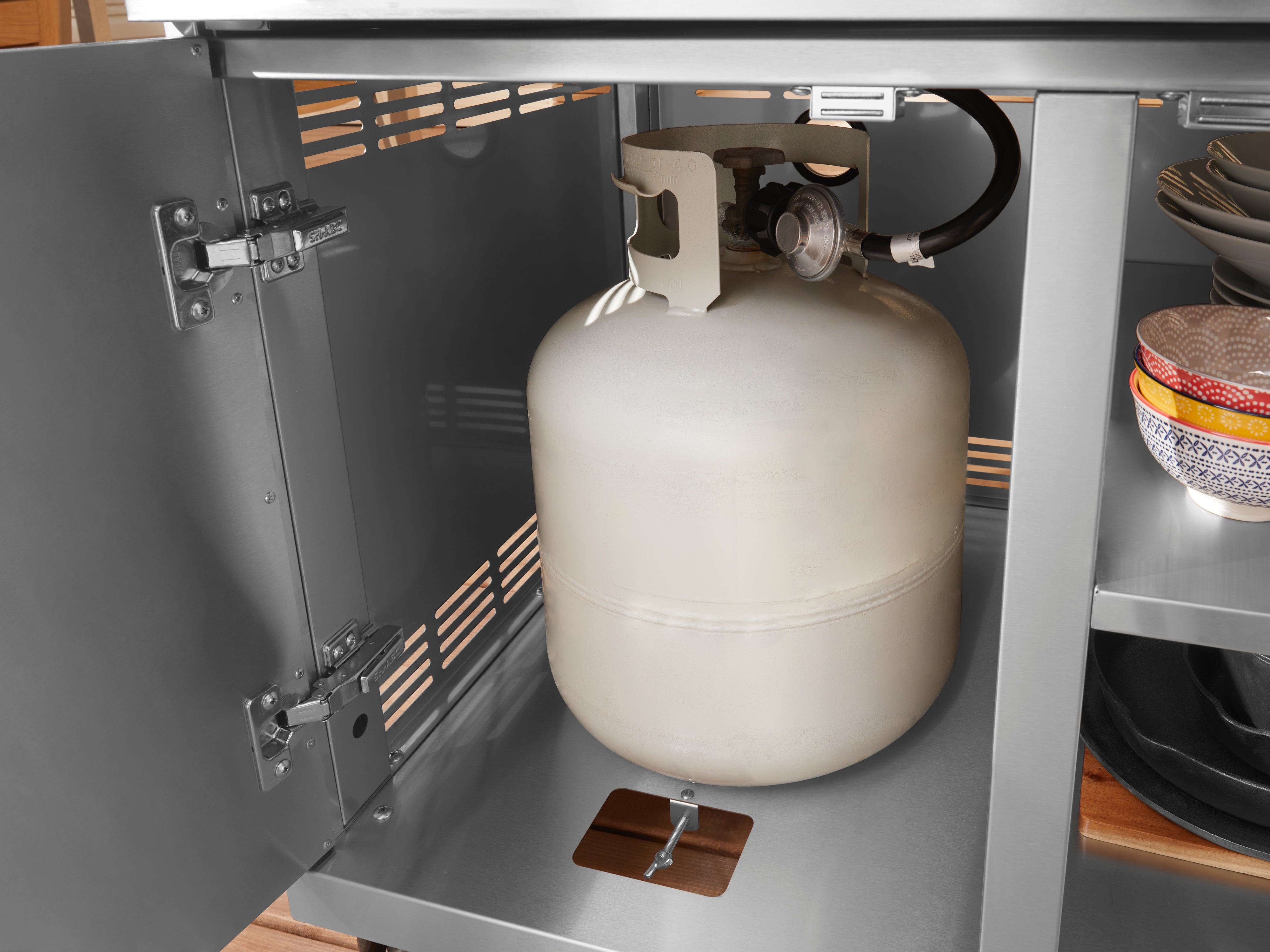 Disclaimer: Propane-powered Grills are compatible with a 20lb propane tank only. Tank not included and must be purchased separately. BTU output, burner dimensions and selected features vary by grill size.