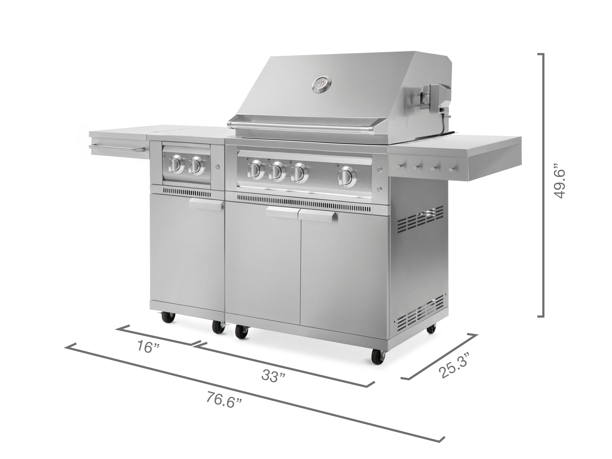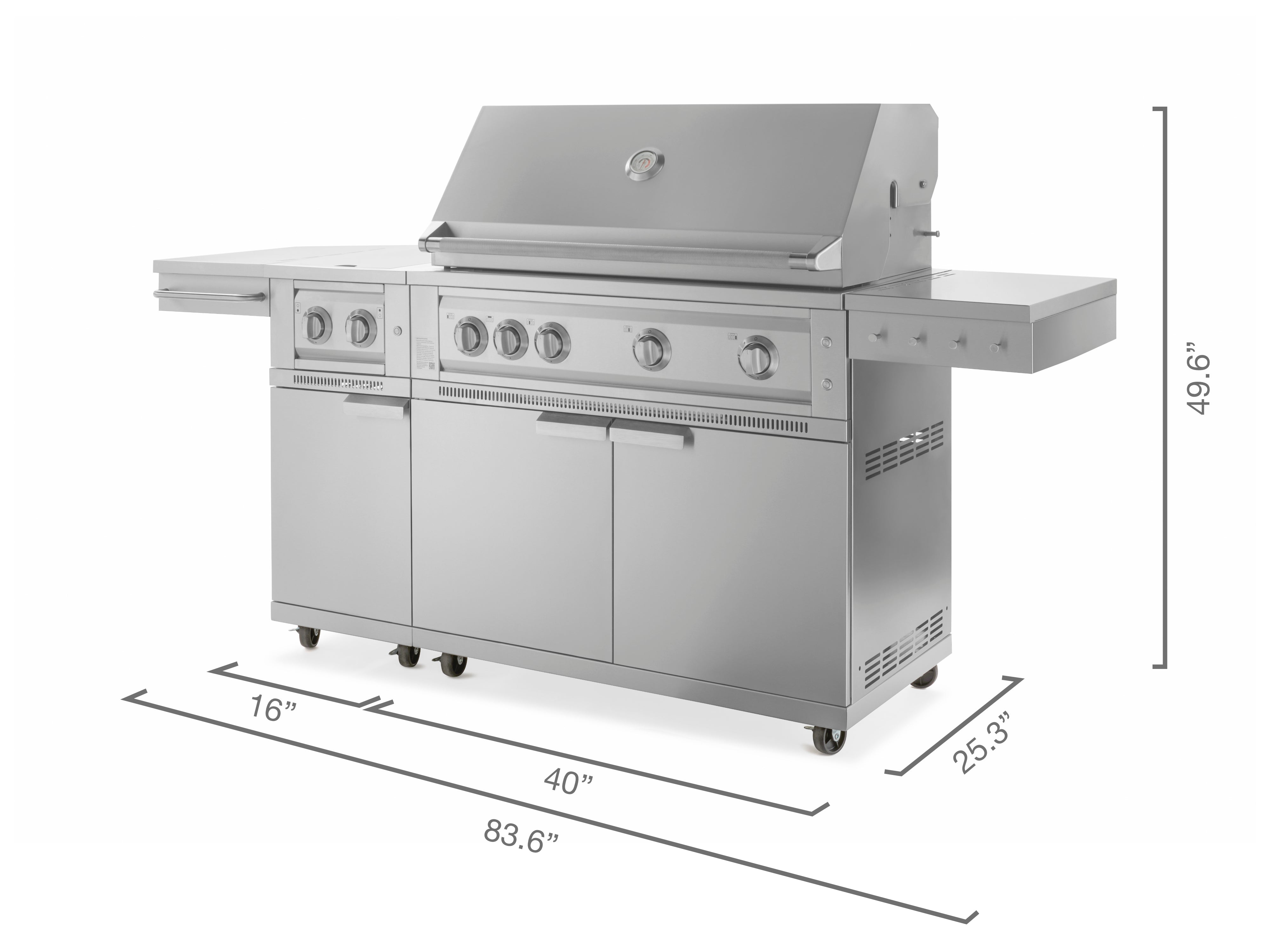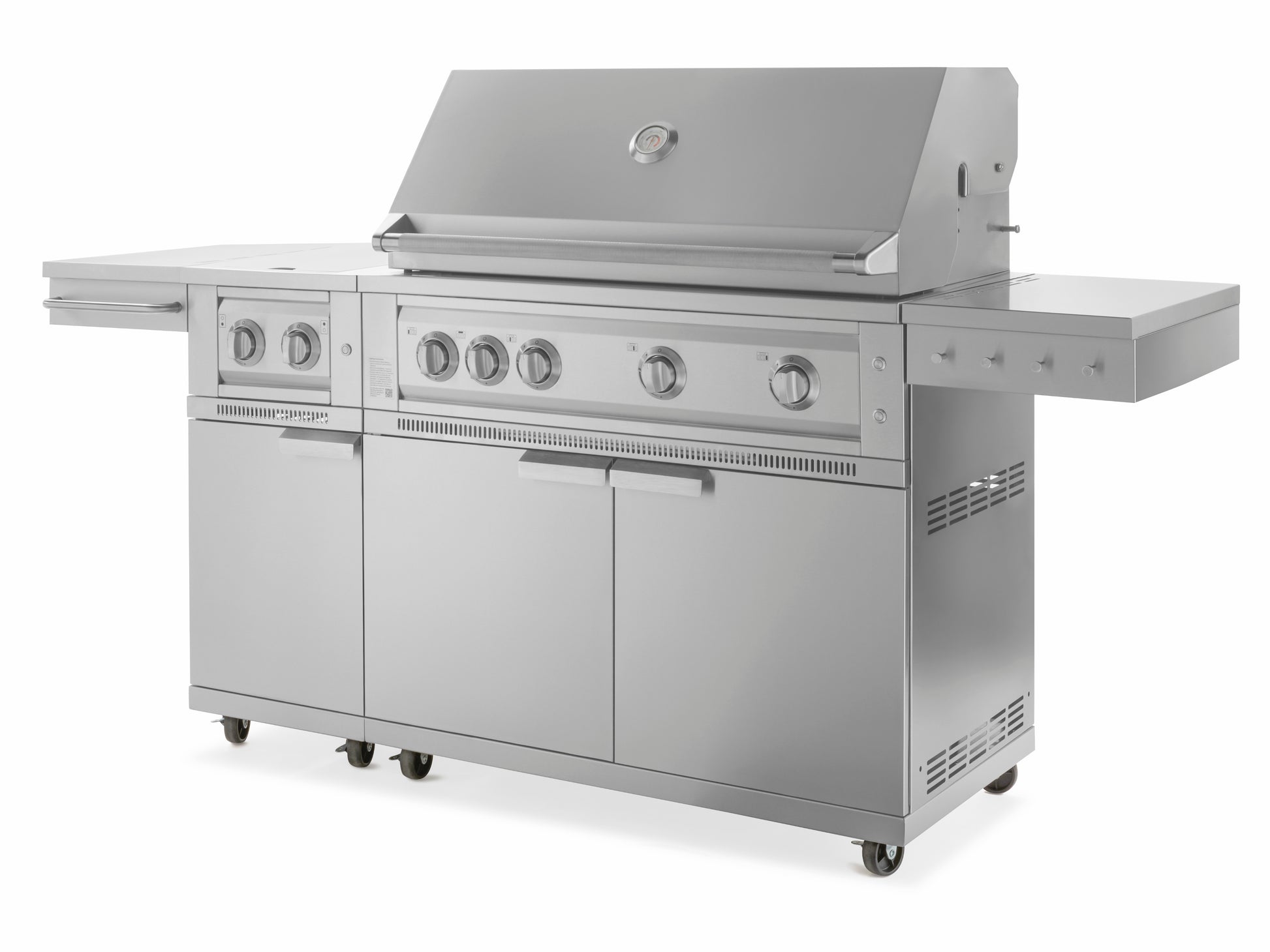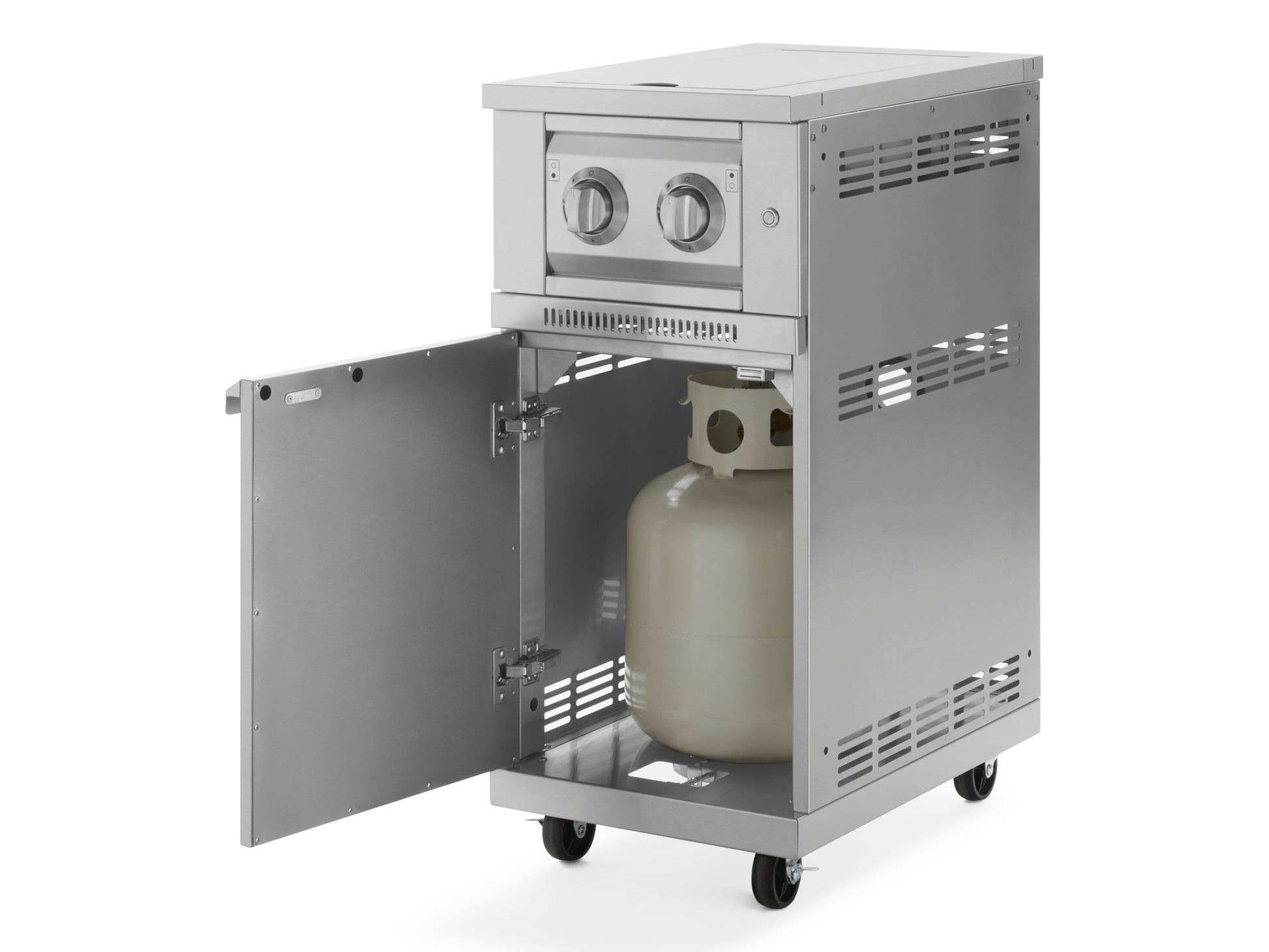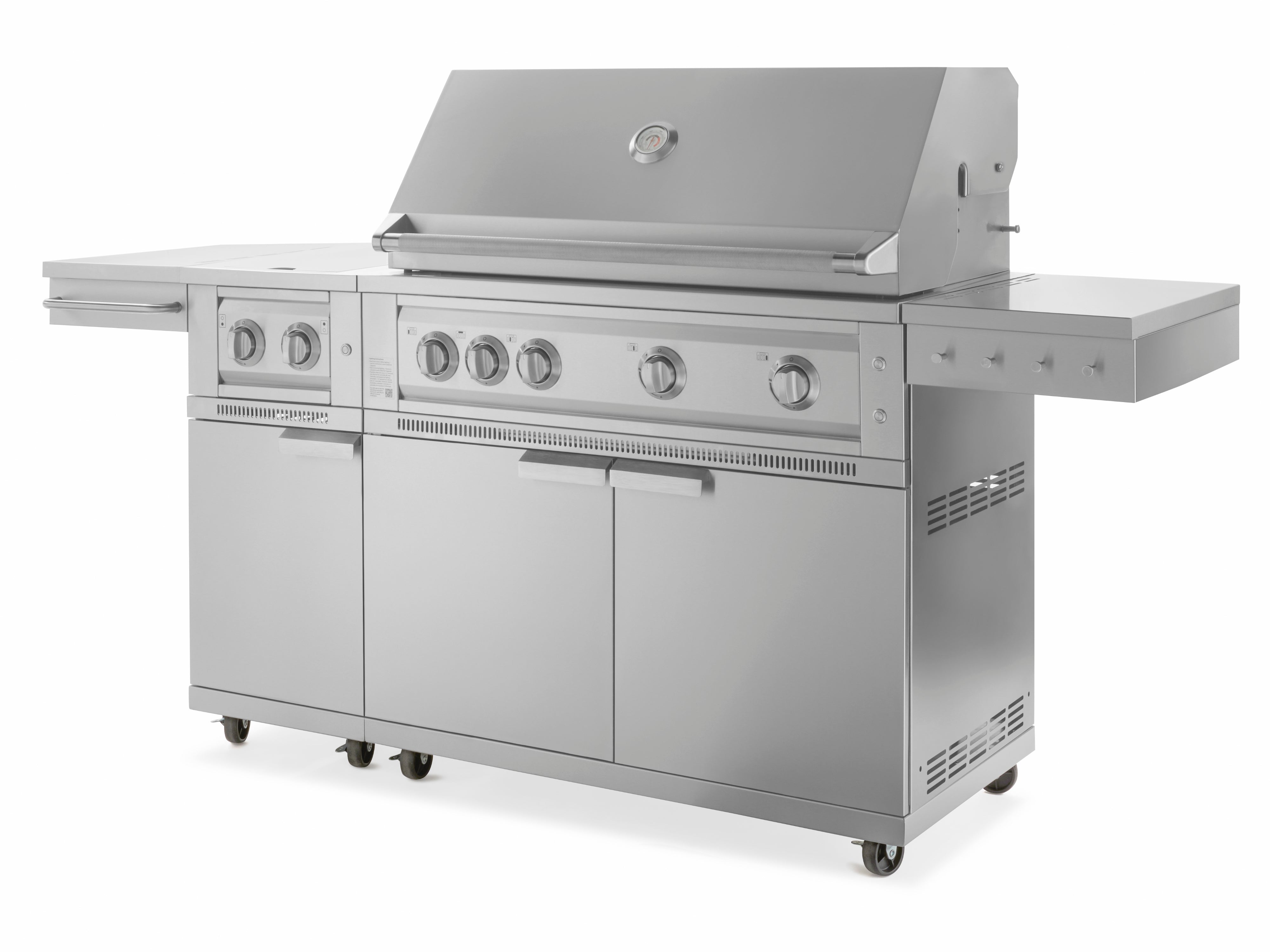 The built-in pulse ignitor for NewAge Dual Side Burner ensures quick and effortless start-up, every time, while precision-control knobs make it easy to accurately adjust your heat settings. Protect your burners when not in use and gain additional prep space with the fold-down flush-mount lid. The included cabinet integrates seamlessly with NewAge Grill Cabinets so you can create a complete mobile grilling station.