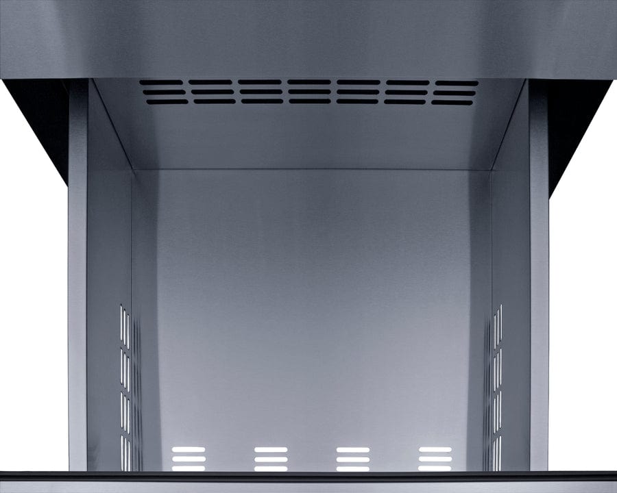 Model SP6DS3DOS is sized with an easy-fitting 24" footprint constructed for safe use in outdoor kitchens. The front-breathing system allows built-in installation, while the fully finished cabinet enables freestanding use. The three drawers are constructed from stainless steel inside and out for lasting durability and easy-to-clean convenience. Professional handles complete the look. This unit has a sealed back to protect it from the elements and a right angle plug for added space savings.