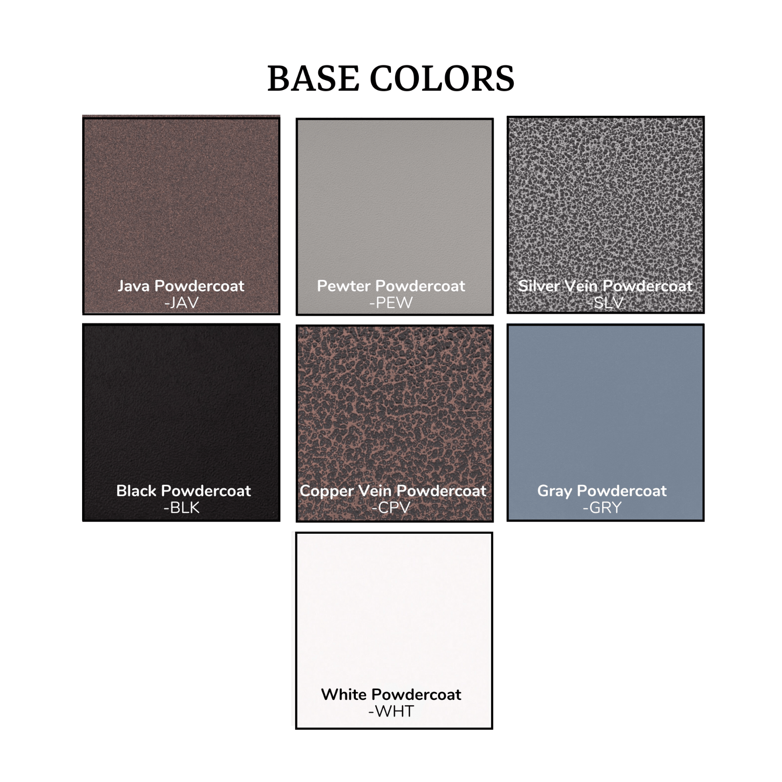 Gray (-GRY), Limestone (-LIM), Natural Gray (-NGY), Vanilla (-VAN)